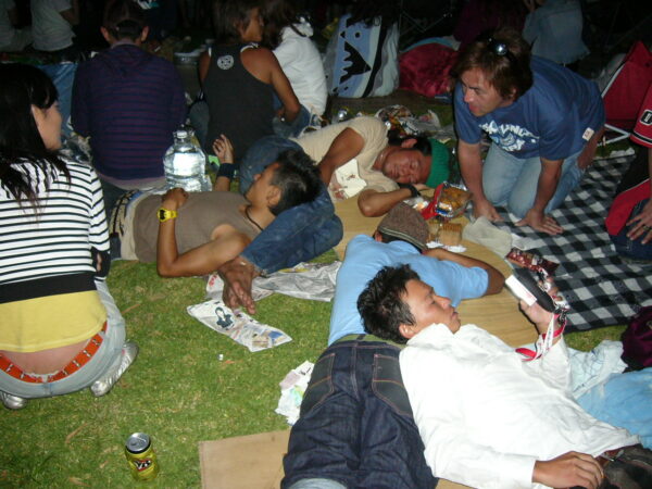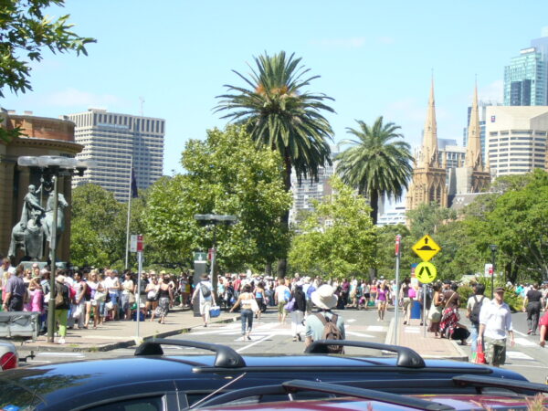 花火観覧会場は、オペラハウスの裏側?でハーバーブリッジが目の前に広がっていてその付近に花火が打ちあがるらしいって事でしたが、観覧会場が結構な広さで花火打ち上げまで、まだ14時間とかの状態。。。