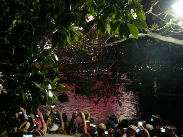 オペラハウスとハーバーブリッジのセットの風景をただ夜景で見るだけでも十分なんだけど、その上から花火!