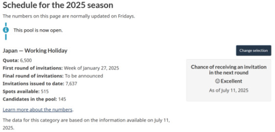 カナダ時間の毎週金曜日に最新情報がアップデートされますが、7月25日に移民局サイトに最新情報アップデートされました