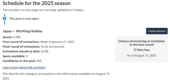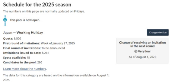 カナダ時間の毎週金曜日に最新情報がアップデートされますが、8月15日に移民局サイトに最新情報アップデートされました