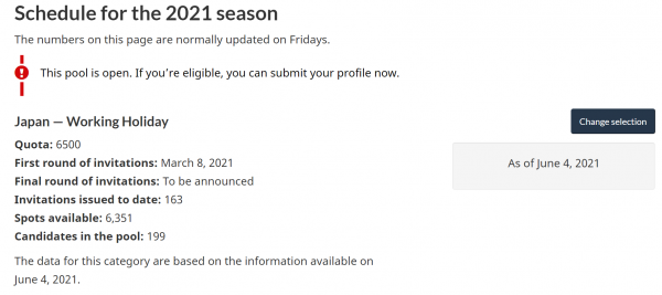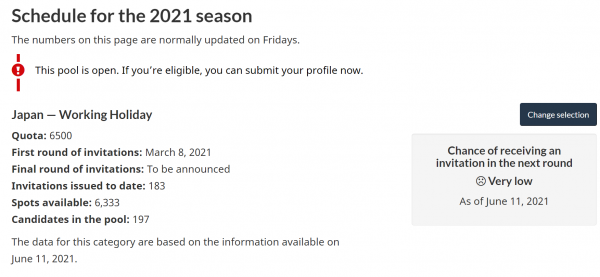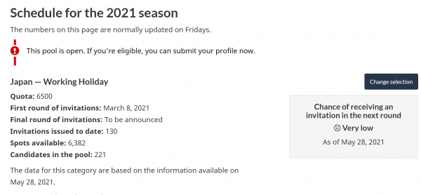 2021年は年明け後もビザ募集自体なかったので、1度も更新できない状況続いてましたが、遂に3月1日から2021年ビザ申請募集開始になりました。これに伴い、移民局サイトに最新情報アップデートもされてます