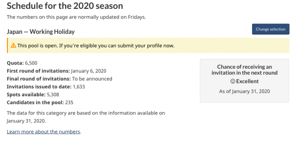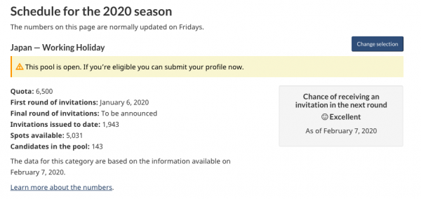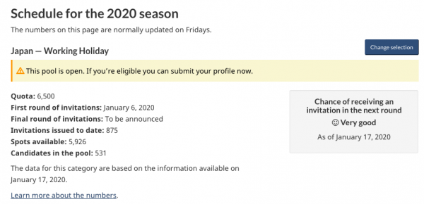 カナダ時間の毎週金曜日に発表されるカナダ ワーキングホリデービザ最新情報。