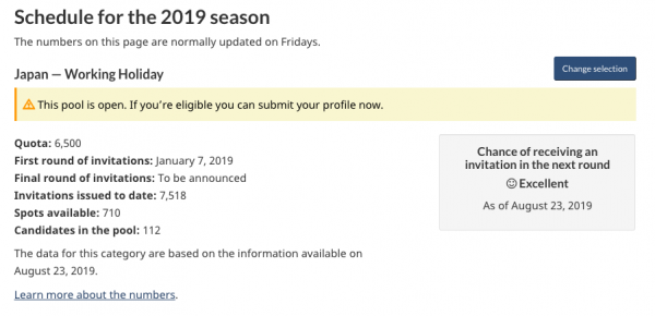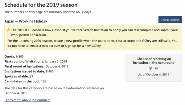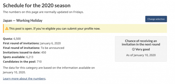 カナダ時間の毎週金曜日に発表されるカナダ ワーキングホリデービザ最新情報。