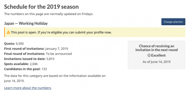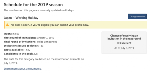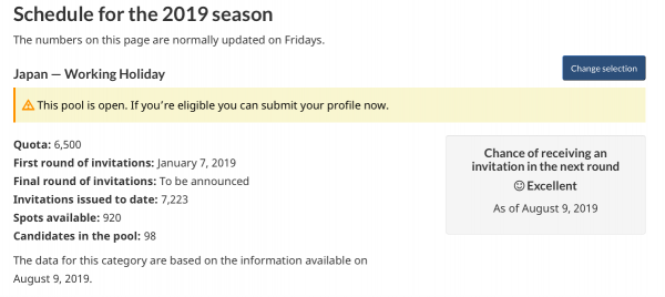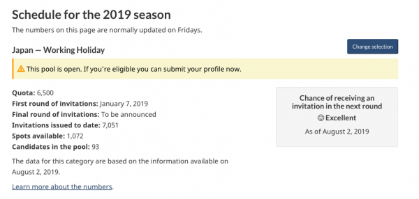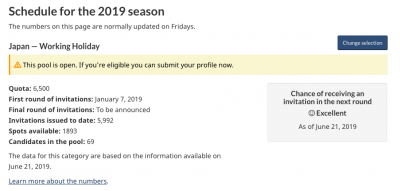 カナダ時間の毎週金曜日に発表されるカナダ ワーキングホリデービザ最新情報。