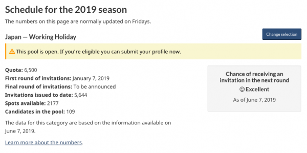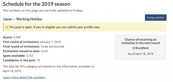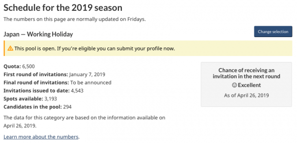 カナダ時間の毎週金曜日に発表されるカナダ ワーキングホリデービザ最新情報。