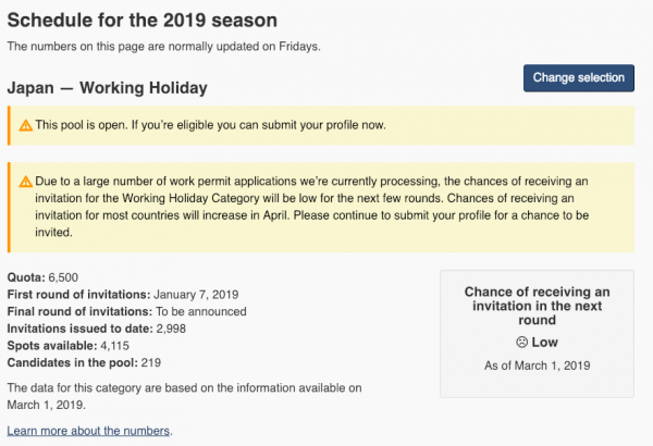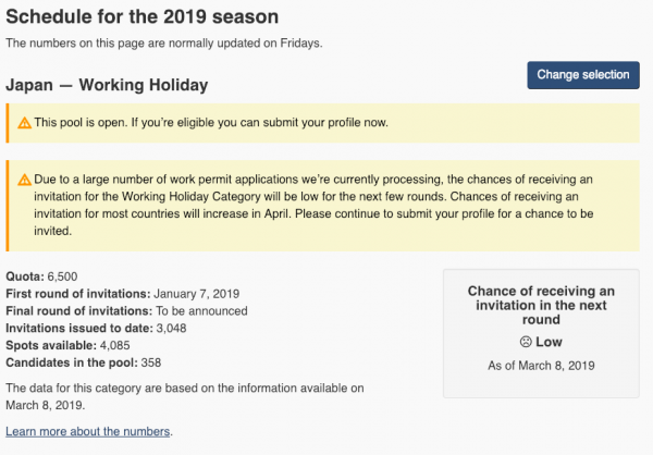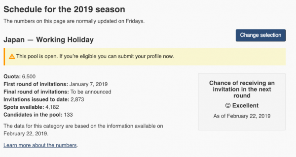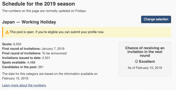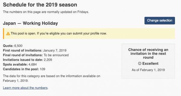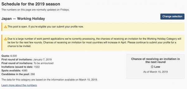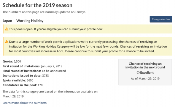 カナダ時間の毎週金曜日に発表されるカナダ ワーキングホリデービザ最新情報。