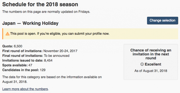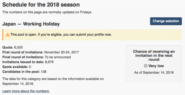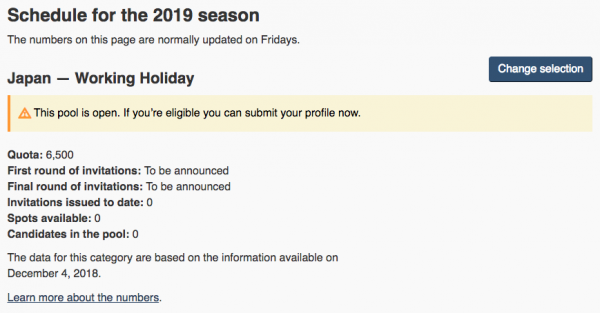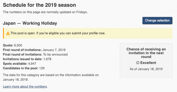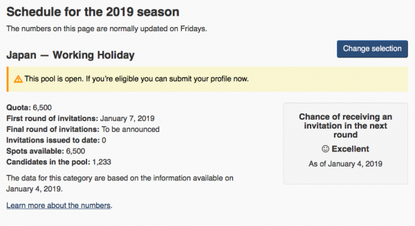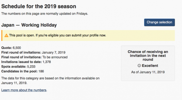 先週1/8に更新したブログ「2019年度カナダ ワーキングホリデービザ1回目の抽選が行われました」でもご案内した通り、1回目の抽選が行われました