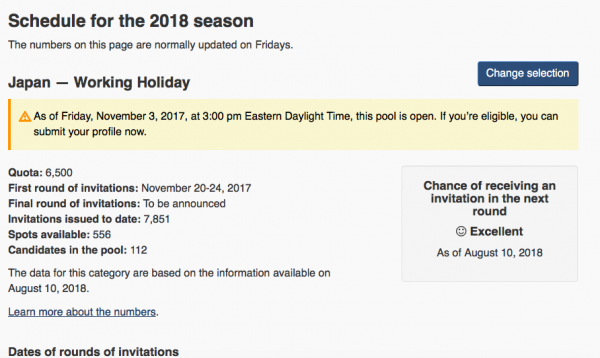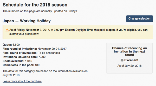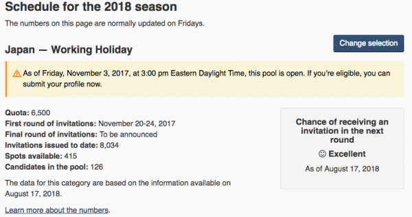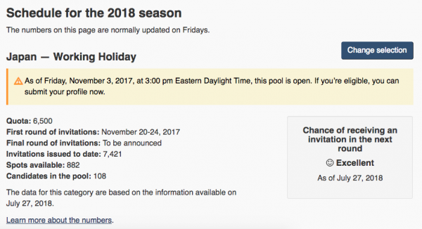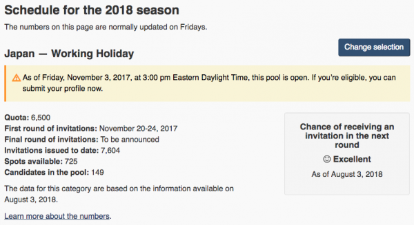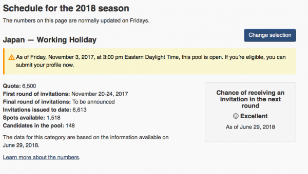 カナダ時間の毎週金曜日に発表されるカナダ ワーキングホリデービザ最新情報。