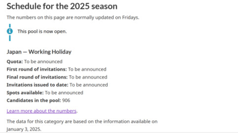カナダ時間2023年12月12日にInternational Experience Canadaが2024年度のワーキングホリデー募集が始まることを発表され、基本的にカナダ時間の毎週金曜日に抽選が行われ、移民局サイトに毎週最新情報がアップデートされてきましたが。
