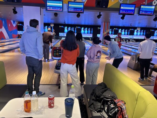 日本人参加者の方が、留学生にボウリングボールの選び方や靴の借り方を教えるなど、自然とサポートする姿が見られ、交流会らしい温かい雰囲気の中でスタートしました。