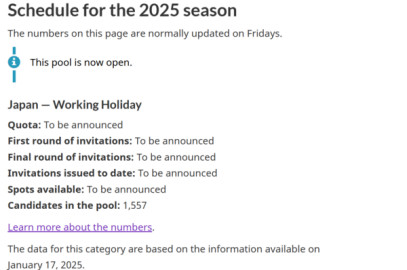 カナダ時間の毎週金曜日に最新情報がアップデートされますが、先週金曜日(1月24日)に移民局サイトに最新情報アップデートされました