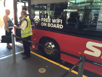 空港に到着して中心部へ向かうシャトルバスで、早速昨年との変化を発見しました。シャトルバス内で無料wi-fiが使えるようになってました。