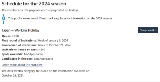 カナダ時間2023年12月12日にInternational Experience Canadaが2024年度のワーキングホリデー募集が始まることを発表され、基本的にカナダ時間の毎週金曜日に抽選が行われ、移民局サイトに毎週最新情報がアップデートされてきましたが。