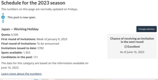 先週23回目の抽選が行われ、移民局サイトに最新情報アップデートもされました
