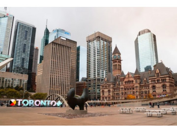 "Nathan Phillips Square"『ネイサン・フィリップス広場』と呼ばれるこのスポットは、トロント市庁舎の前庭で観光名所のひとつとなっています。