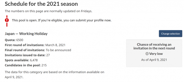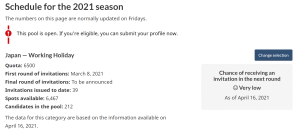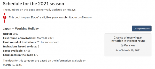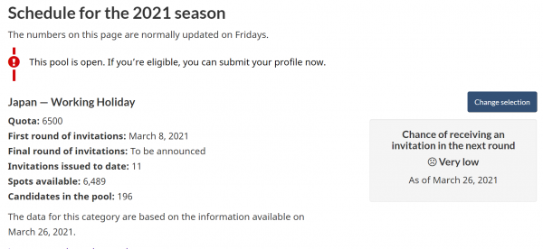 2021年は年明け後もビザ募集自体なかったので、1度も更新できない状況続いてましたが、遂に3月1日から2021年ビザ申請募集開始になりました。これに伴い、移民局サイトに最新情報アップデートもされてます
