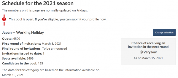 3月1日のブログ「3月になりました 」でも書きましたが、カナダワーホリビザ2021年度の募集がスタートしました。
