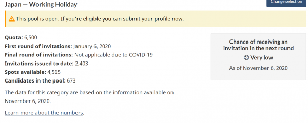 11月12日(木)にワーキングホリデーの応募は締切とのことです。