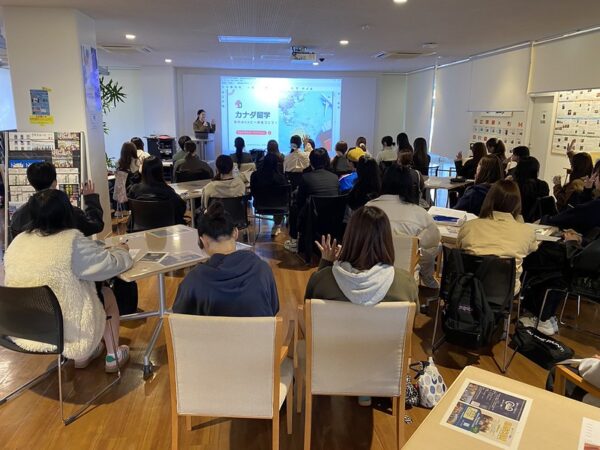 今回のガイダンスでは、カナダ・バンクーバーとケロウナにキャンパスを持つ語学学校「Vanwest College」より、日本人スタッフのRinaさんをゲストとしてお迎えし、